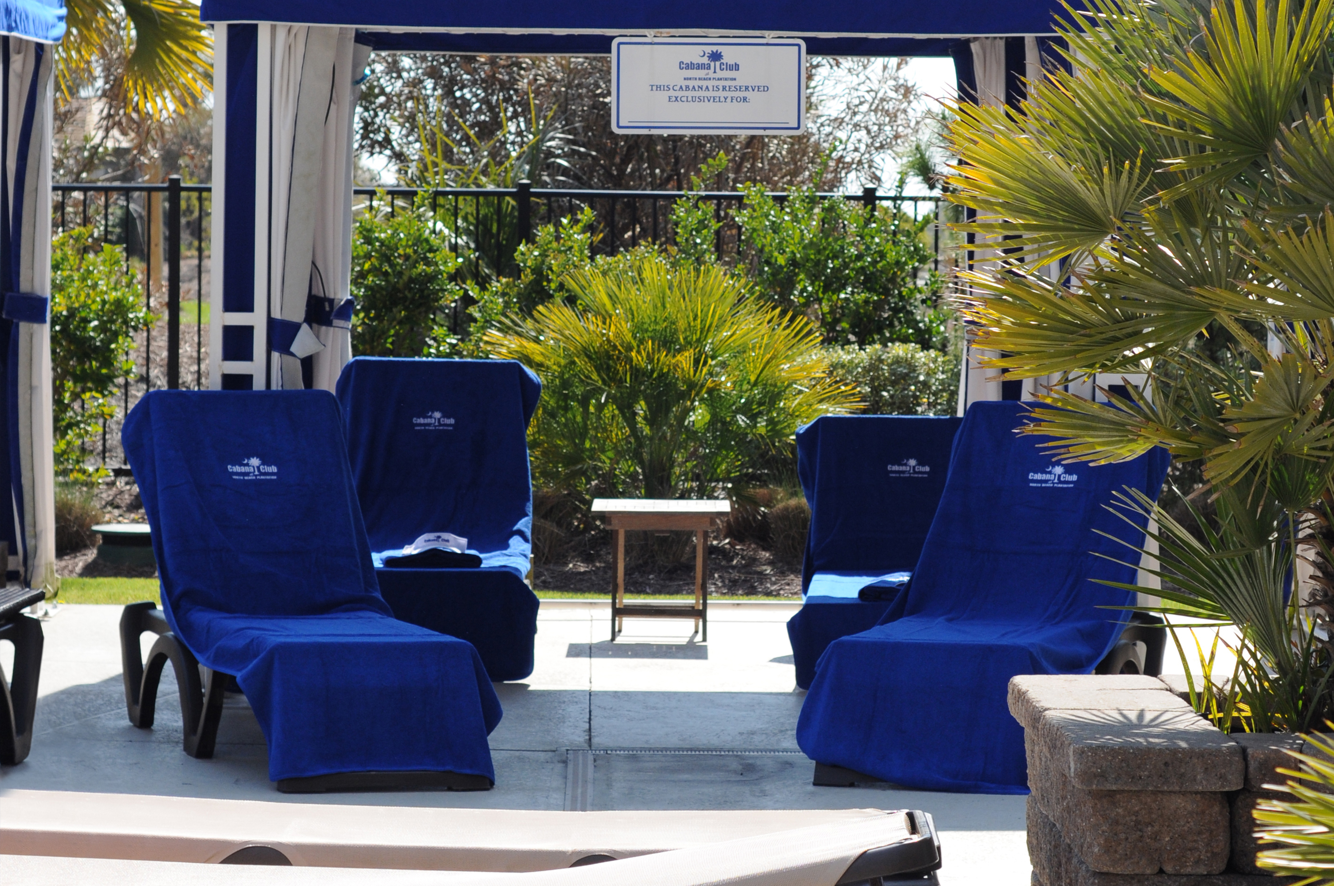 All are equipped with 2 Lounge chairs, a ceiling fan and beverage table for your convenience.